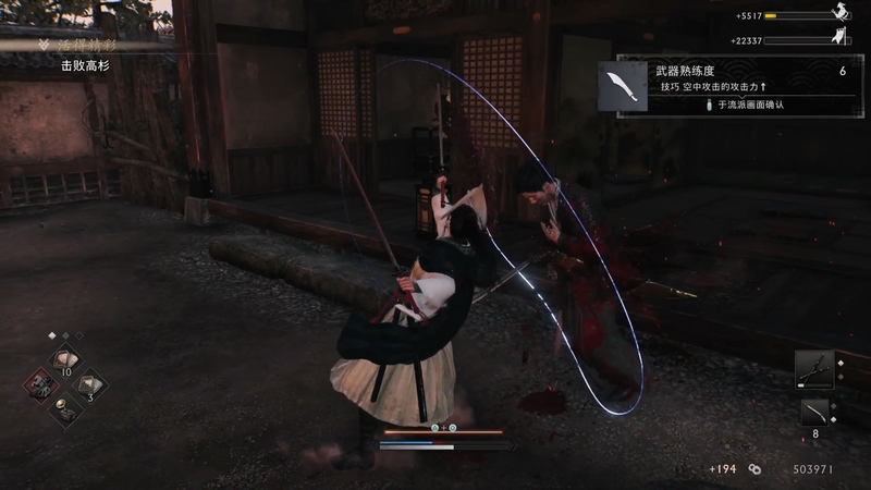 在攻击中途插入武技,看准时机使用石火反击,并通过闪刃来为自己提供后撤的空间,简单易懂的操作思路,却提供了足量的连招策略,保证了玩家战斗中的上下限。