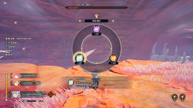 那么有没有逃课的方法呢,有!那就是精灵器。游戏初期我还是循规蹈矩的用连段攻击配合以各种辅助魔法,打法风格颇为JRPG。可到了中期,我发现连击一套顶多两百伤害,用精灵器攻击可以打出三四百的大范围伤害,而且还能远程输出的时候,我的打法就变成了精灵器复读了。