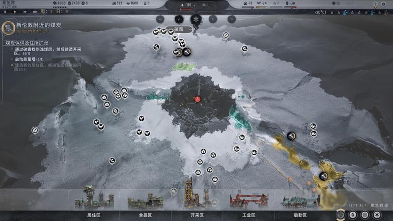 资源的基础参数包括劳动力、暖券(钱)、预制部件、燃料(煤炭、石油)、住所、食物、材料和商品,这些将会是贯穿游戏始终的重要条件。城市发展与1代的同心圆不同,你需要点击地图上六边形的板块去破霜开拓地图,然后就能在任意位置建造区域。区域分为居住区、食品区、开发区、工业区、后勤区,同样也是点击六边形的地块建造,对应的资源就是之前提到的住所、食物、材料什么的。