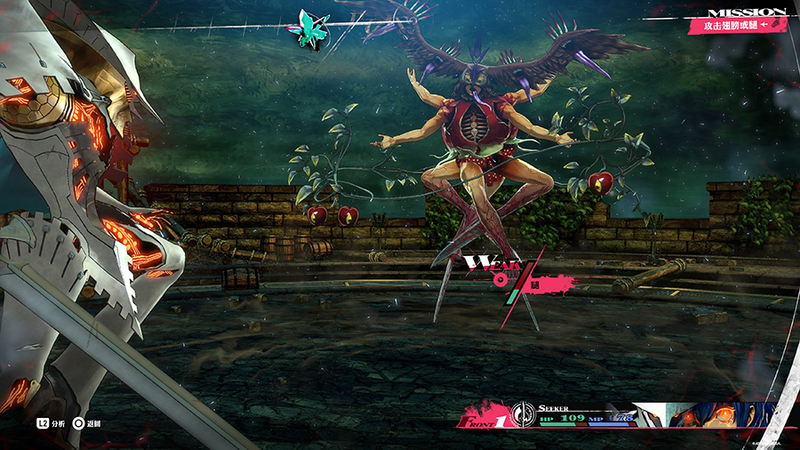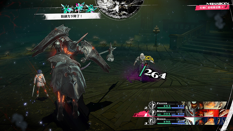 回合战斗部分采用了《真女神转生5》的行动点机制,打出weak即可行动点消耗减半,反之则加倍。在此基础上本作还追加了“合题”机制,可以消耗两个行动点让两名角色同时使出效果极强的合体技。