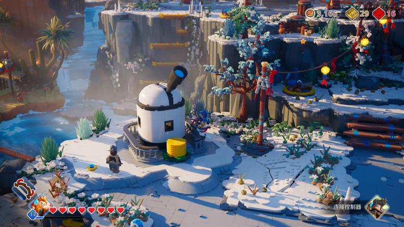 比较有趣的是过场对白以及插卡打诨的开玩笑,让本来就不难的游戏变得更为轻松。地平线大冒险还把乐高的城市系列、幻影忍者系列以及游乐场系列中的元素放了进来,也就是说你可以在领地里建设红绿灯、忍者道场、火山车或者摩天轮等建筑,相当于一个大型的主题游乐场。在建造大建筑的时候可以简单选择地基、房顶和主题颜色,一些建筑还可以进行互动,比如从甜甜圈店里买一个甜甜圈出来,然后随地乱丢,或者利用天文台改变当前的天气情况。