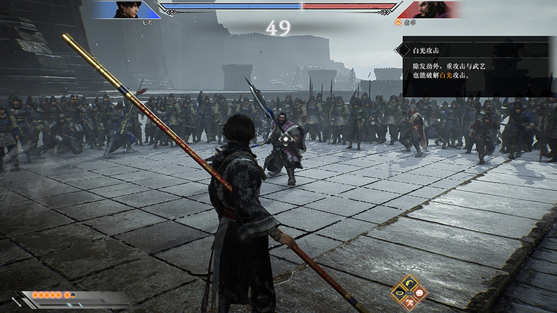 非同模的武器动作设计,加上专属的武器技选择,使得每把武器与每个武将都有着完全不同的操控体验,即使是可控武将历代最少,但其动作性绝对是历代最强的。随着各种武器技的解锁,连招的花样越来越多,这给了我非常充足的新鲜度与爽快感。