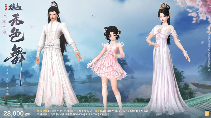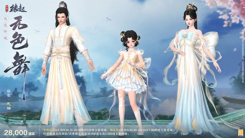 人间四月,江湖新貌,《剑网3缘起》携手《仙剑奇侠传一》联动活动今日开启!联动主题衍生新品与全新天选计划系列外装“天选无色舞”4月18日上架,更多精彩,尽在《剑网3缘起》!