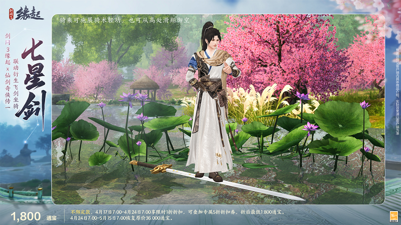 ※ 可叠加使用5折专属折扣券,享折上折特别优惠!最低1,800通宝即可购买,御剑潇洒游江湖!