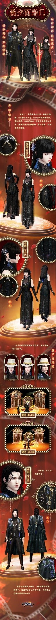 飘逸的裙摆随风轻扬,如夜色一般神秘的黑色轻纱上闪烁着细碎星光。乐声响起之时歌舞升平,一同前往“百乐门”所在之不夜繁城吧!