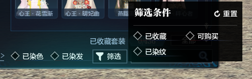 2. 新增已染色、已染发等筛选条件,少侠可以更加快速定位外装的染色情况;